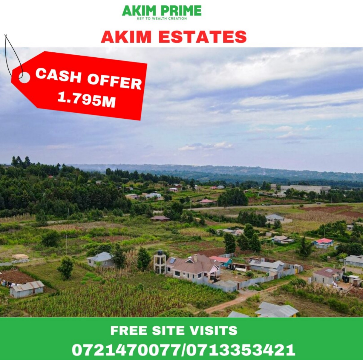 At Akim Prime , we believe that land is more than property—it is legacy, security, and opportunity. We are a trusted real estate company dedicated to helping individuals, families, and investors acquire prime land across Kenya with transparency, professionalism, and integrity. We specialize in selling prime, affordable, and well-located land across Kenya. Whether for residential, commercial, or investment purposes, we have plots tailored to your needs.